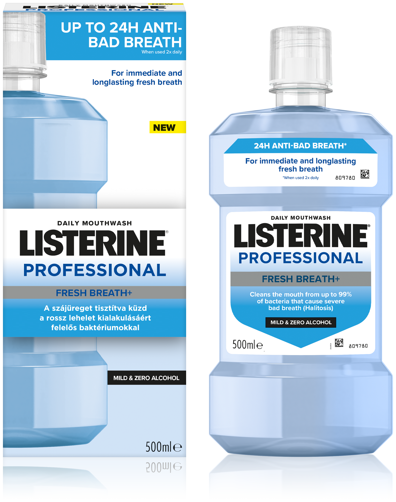 Aqua, Propylene Glycol, Sorbitol, Poloxamer 407, Aroma, Sodium Fluoride, Eucalyptol, Zinc Chloride, Benzoic Acid, Sodium Benzoate, LAURAMIDOPROPYL BETAINE, Methyl Salicylate, Thymol, Menthol, Sodium Saccharin, Sucralose, CI 42090, BHT, CI 17200, CI 42053. Contains Sodium Fluoride (450ppmF-).